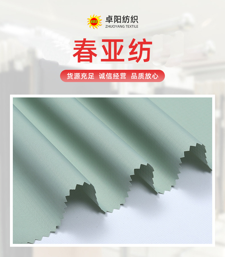 卓阳纺织是一家专业从事化纤梭织面料的研发、生产与销售的现代化企业,尤以面料的功能性设计和整理见长,更具特色的是公司生产的高防水透湿面料、复合面料、荧光面料、阻燃面料、防静电及导电面料等。